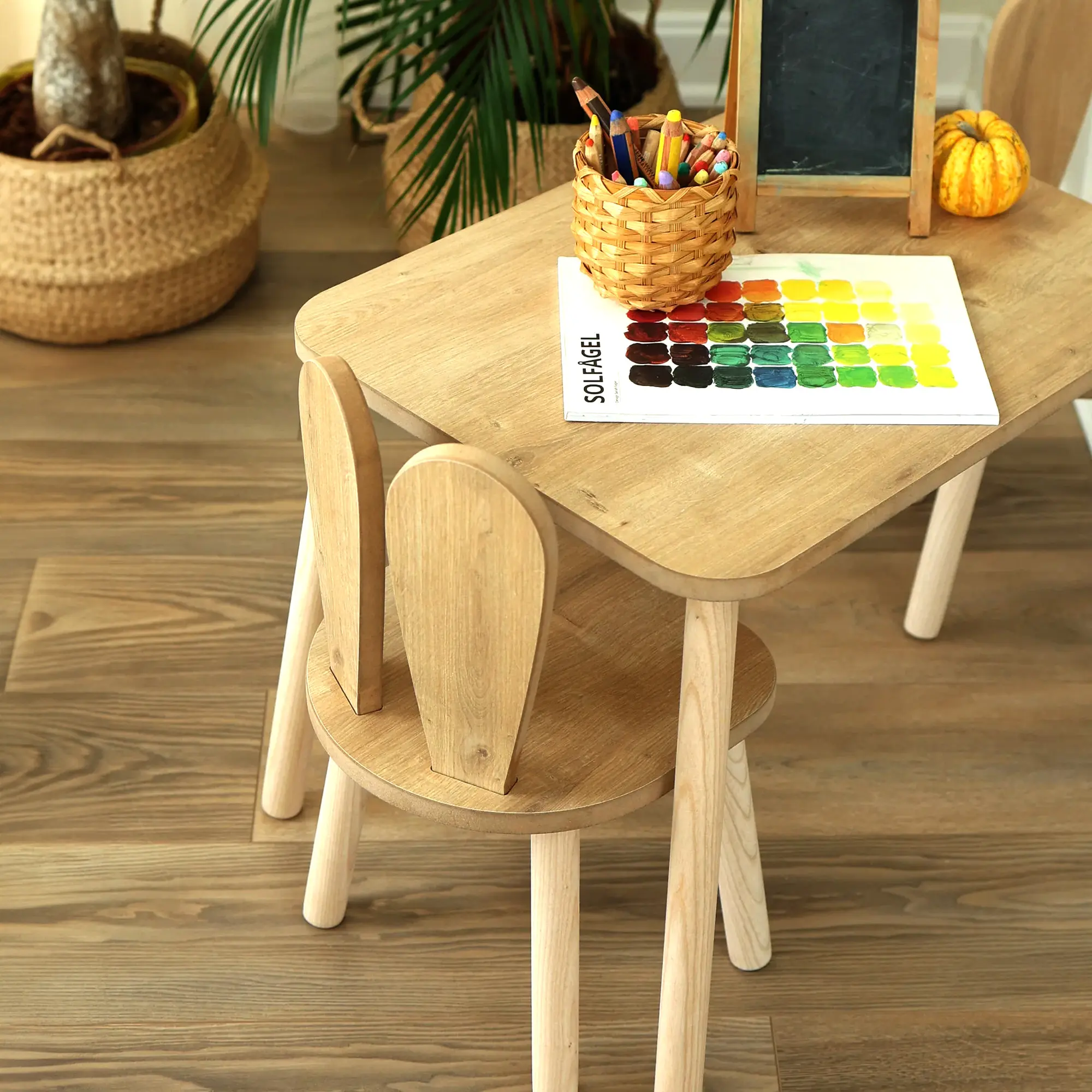 We hebben stoelen in de vorm van konijntjes, herten en Mickey Mouse-oren voor je kinderen. Onze houten tafel en stoelset voor kinderen is het ideale cadeau voor verjaardagen, feestdagen, Kerstmis of een andere gelegenheid.