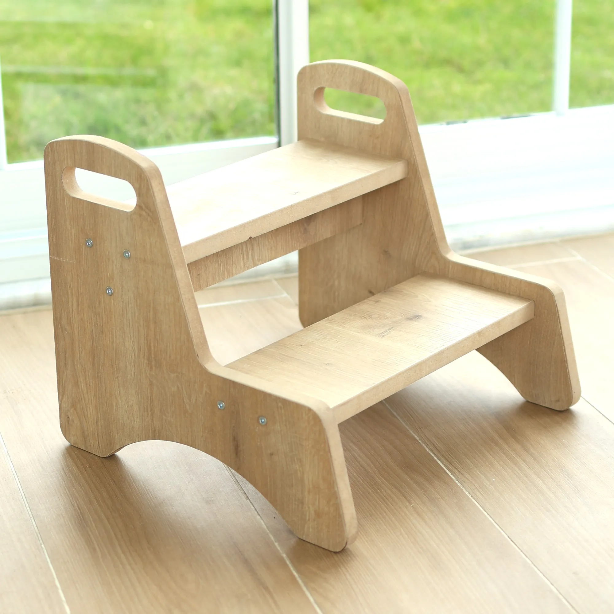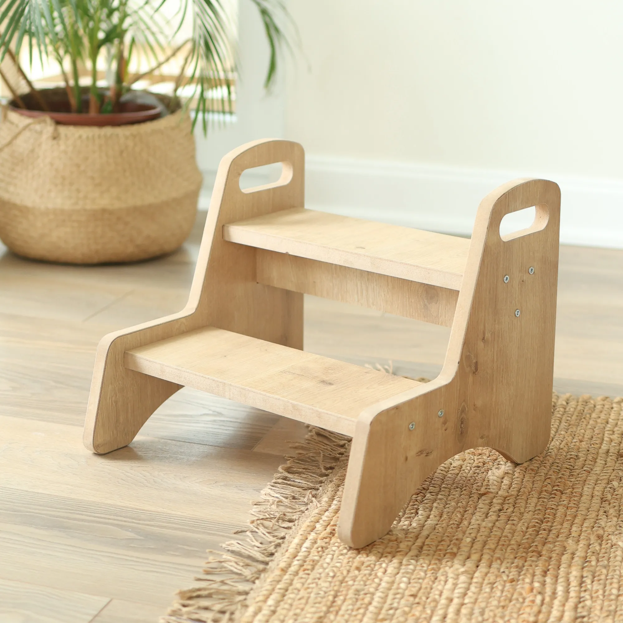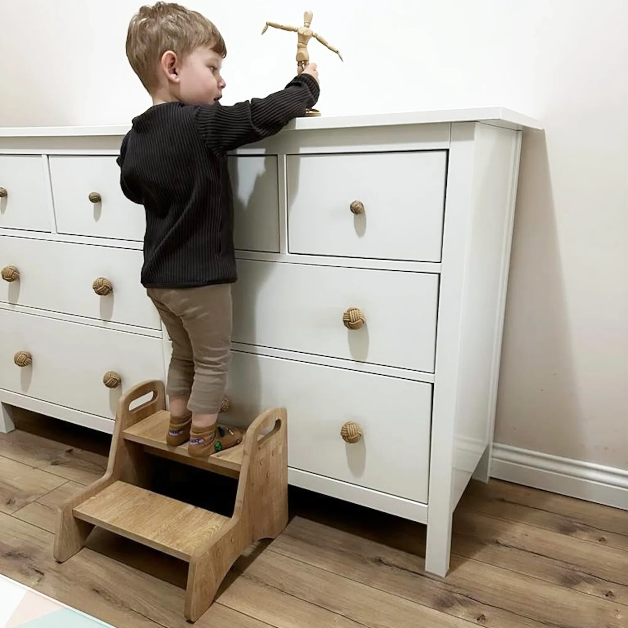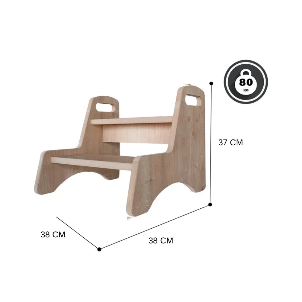De opstapkruk is ontworpen met veiligheid als topprioriteit. Het antislipoppervlak zorgt ervoor dat je kind stevig staat, terwijl de afgeronde hoeken beschermen tegen verwondingen. Het stevige frame biedt uitstekende stabiliteit, zodat je kindje zonder zorgen zelfstandig kan staan.